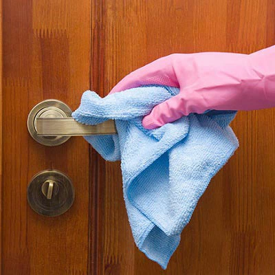 - با حرکات نرم و یکنواخت، سطح درب را تمیز کنید. برای درب های چوبی، بهتر است در جهت رگه های چوب حرکت کنید.